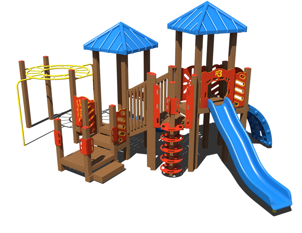 Are you looking for a natural-looking playground? Our commercial recycled playgrounds could be just what you’re looking for. The decks, posts, and barriers on our recycled play equipment are 100 percent recycled from post-consumer plastic products like milk jugs. These recycled playground components are reinforced with fiberglass elements for even greater strength that prevents deterioration like what you’d expect from a traditional wood playground. These playgrounds may look and feel exactly like wood but they don’t come with all unwanted maintenance! They're protected from corrosion, rotting, and cracking while also resistant to salt spray, termites, oil, and fungus.